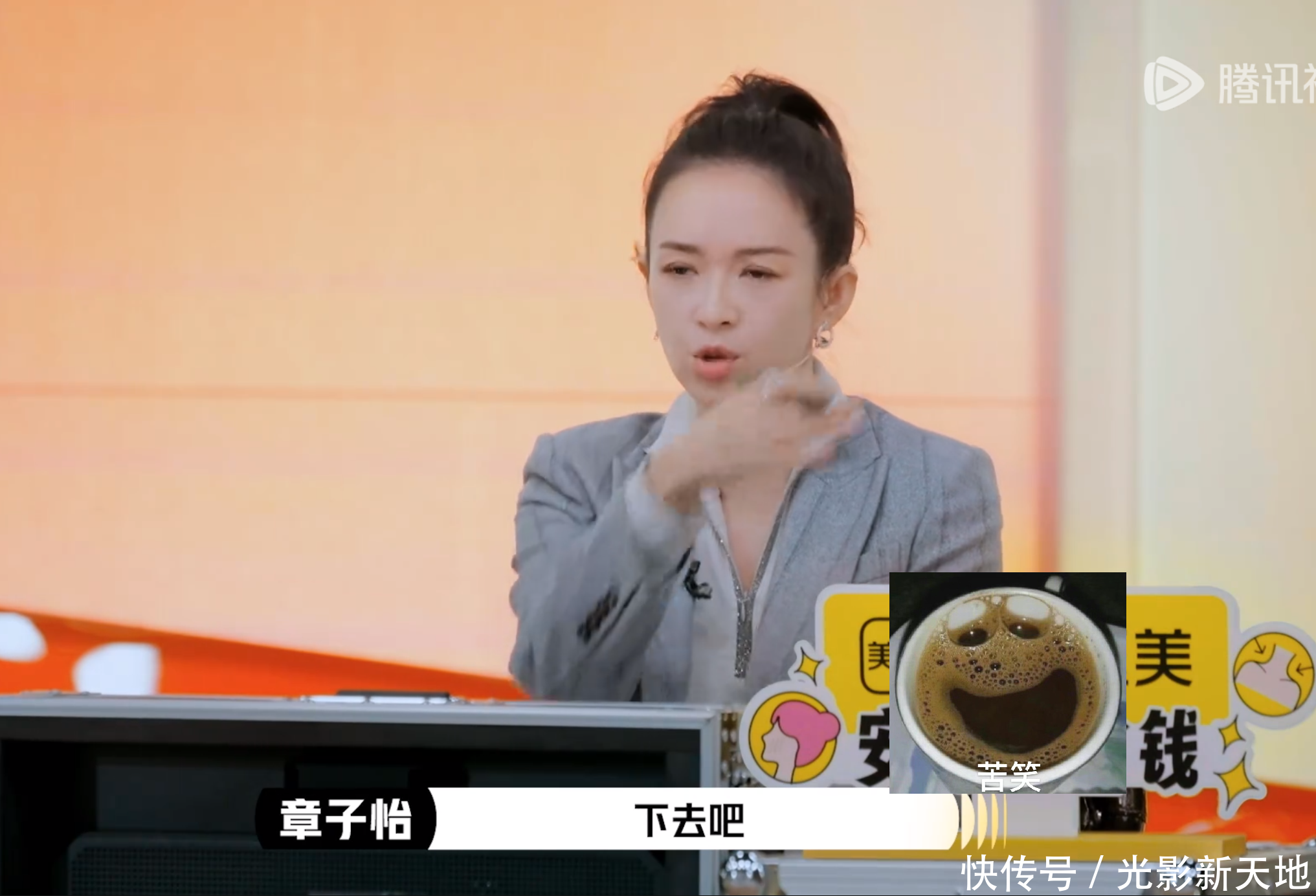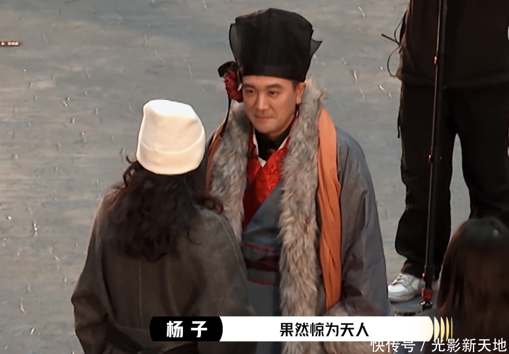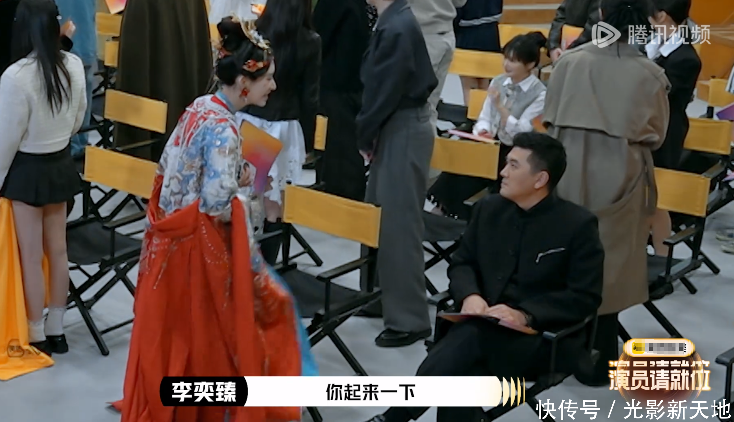比较典型的是杨子,这个自己经营企业、直播风生水起、名片都附赠瑞士军刀的有钱人,没把现场其他所有人放在眼里。演员进场的时候有个细节,每进来一个人,其他所有人都会礼貌的站起来,只有杨子始终大剌剌的坐在那。到最后他旁边的李奕臻看不下去了,提醒他“你起来一下”,马上又胆怯的说了句“算了,对不起”,她肯定也考虑到杨子的有钱老板身份吧!后面杨晓培和惠英红进来,杨子都是不情愿的站起来一下。